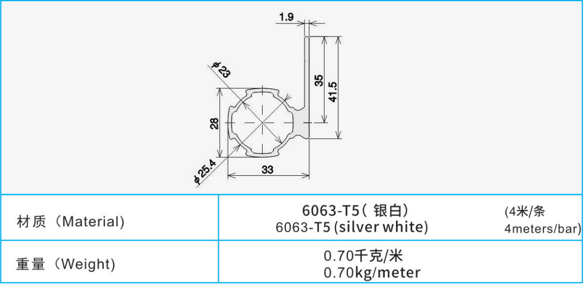 線棒材質(zhì):6063-T5(銀白)(4米/條)