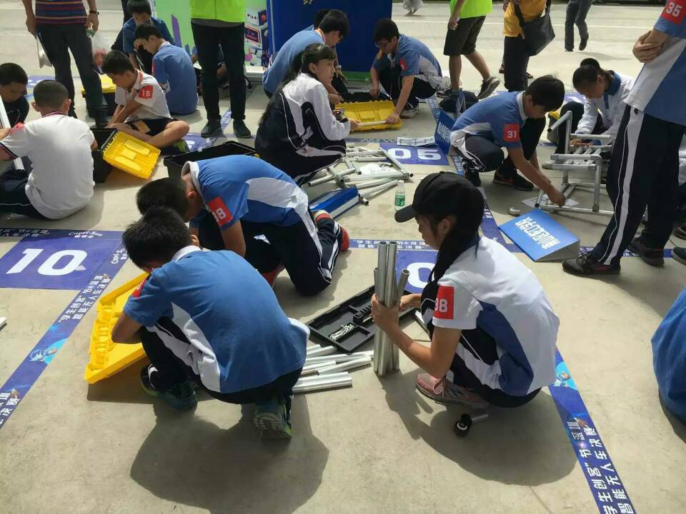 學生們在認真進行組裝: