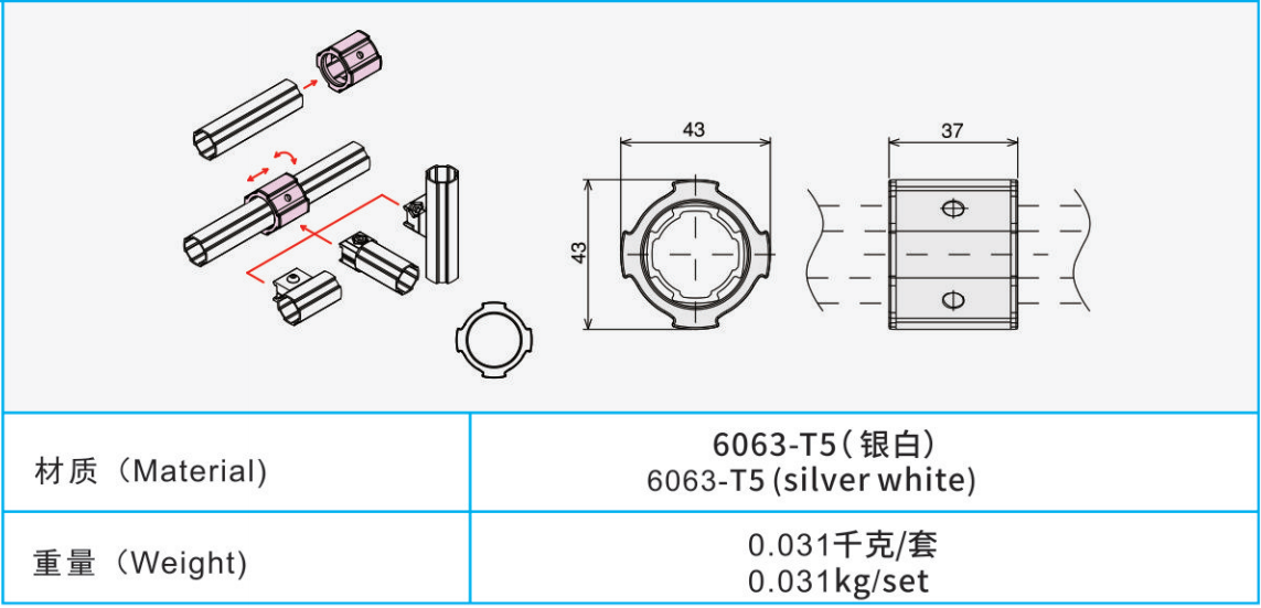 材質:6063-T5(銀白)